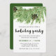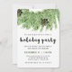 This stylish holiday party invitation features a green watercolor pine wreath with pine cones, and modern typography. We have used art from LABFcreations.