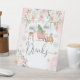 Winter Pink Woodland Animals Baby Shower Drinks Pedestal Sign