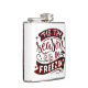 The flask itself is fine. It’s a cheap flask, obviously bought in bulk, however am prepared to overlook that. Given that it is a personalized item, I would have liked to have seen gift boxing instead of the generic packaging. Terrible printing, and/or quality. It’s a cheap, tacky vinyl. It is not cut straight and is also applied in a way that it is overhanging the bottom, causing the glue to catch on items and it will eventually roll and tear, damaging the wrap.