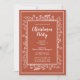 Modern and elegant christmas party invitation. Decorative hand drawn plants, leaves and berries illustration on terracotta red background. Add your text.
