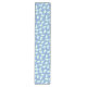 Here's a pretty winter theme table runner that can easily be used all year long. It features a hand drawn light blue polar bear and snowflake pattern on a sky blue background. Cute!