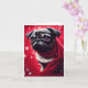 Artwork of a cute Pug Puppy wearing a red scarf in the snow.