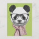 This design features a cute panda bear wearing eyeglasses and a pink knit scarf.