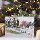 Winter Red Barn Watercolor Landscape Thank You Card