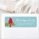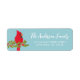 Cute red cardinal Christmas return address labels perfect for your holiday mail. This modern design features a red cardinal bird illustration, greenery berry branch and snow on a blue background. The trendy calligraphy script font adds a fun touch to these unique family holiday return address labels.