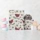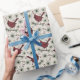 This elegant winter wrapping paper features a pattern of hand-drawn red cardinal birds perched on a pine branches.