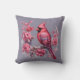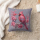 Winter Red Cardinal Pink Flowers on Grey Cushion
