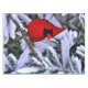 A beautiful Red Cardinal resting among snowy winter evergreens.