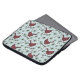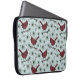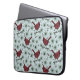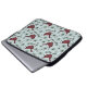 This elegant winter laptop sleeve features a holiday season pattern of hand-drawn red cardinal birds perched on a pine branches against an elegant light blue background.
