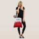 This roomy tote bag is the perfect accessory for holiday shopping, a winter wedding, or any time you want to show your style. The design features Christmas red with white snowflakes, and it is personalised with a name, initials, or anything you like.