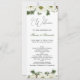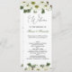 Winter Wedding - Wedding program. This design features a watercolor illustration of winter white rose (Hellebores) with an arrangement of mistletoe, pine branchlet, pine cones and holly. You can adjust text according to your requirements.