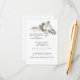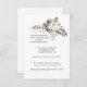Greenery of pine with white roses make an elegant floral wedding details card. Further accentuated with subtle berries and pine cones. Calligraphy graces the design to set it apart simply, but effectively. It is feminine and stylish, with an edited palette of white, deep pine green, and soft red.