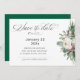 Greenery of pine with white roses make an elegant floral wedding details card. Further accentuated with subtle berries and pine cones. Calligraphy graces the design to set it apart simply, but effectively. It is feminine and stylish, with an edited palette of white, deep pine green, and soft red.
