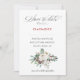 Greenery of pine with white roses make an elegant floral wedding details card. Further accentuated with subtle berries and pine cones. Calligraphy graces the design to set it apart simply, but effectively. It is feminine and stylish, with an edited palette of white, deep pine green, and soft red.