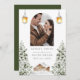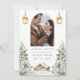 Announce your wedding in cosy winter style with this rustic save the date card. Featuring a charming snowy cabin scene framed by evergreen trees and lanterns, this design exudes warmth and natural elegance. Add your photo and personalise the names and date for a unique, heartfelt keepsake your guests will love.