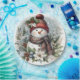 Nestled among pinecones and poinsettias, a cheerful snowman greets the season with warmth and whimsy. Holly berries and frosted branches frame a moment of quiet joy beneath softly falling snow.
