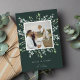 Festive and elegant in shades of pale green, greyed jade and white, our Winter Sage holiday photo card features your favourite square photo framed by sketched green botanical leaves on a dark green background. Personalise with your custom greeting (shown with "merry & bright") and your family signature beneath.