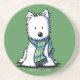 Sandstone coaster featuring west highland white terrier dog breed art by children's book Illustrator, Kim Niles.