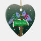 A cute winter holiday scene featuring two little blue birds with bows around their necks. They are perched on a sign post that says 'Bless this Home'