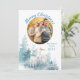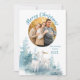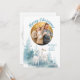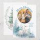 Winter scene Christmas photo card, with beautiful watercolors of a two white deer, against a pine tree winter backdrop. Personalise all the text to read what you want. The front is ready for your personal photograph too!. Lovely Christmas card!