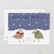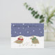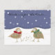 A cute scene of winter snow and a sky full of snowflakes. Two little birds with holiday bows around their necks. A cute message...