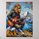 This imaginative artwork showcases a lion, ready for a "Glacier Grind," with sunglasses and a leather jacket, captivatingly playing an electric guitar. Perched on a snowy mountain, it overlooks a vast blue lake and distant snow-capped peaks. The vibrant, textured impasto creates a powerful and whimsical atmosphere, making this "Rock or Die" scene truly unforgettable.