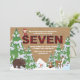 A winter/December-theme invitation with a burlap background and snow-covered trees featuring woodland animals and the holiday elf. The elf can be dragged to any location, made larger or smaller or eliminated. The perfect way to celebrate a winter, seventh birthday! (<a href="https://www.freepik.com/free-vector/winter-animal-set-of-five_1488911.htm">Designed by Freepik</a>). (<a href="https://www.freepik.com/free-vector/christmas-trees-pack_755817.htm">Designed by Freepik</a>). <br/><br/>The card is easy to customise with your wording, font, font colour, paper shape options and choice of six paper types.<br/><br/>Not exactly what you're looking for? All our products can be custom designed to meet your needs at no extra charge.<br/><br/>Simply contact us at heartfelthelper@gmail.com.<br/><br/>Coordinating products available: Just ask us!