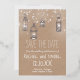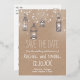 Rustic winter silver foil lanterns on an image of brown paper save the date postcard.