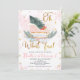 Sweet girl's oh what fun pink sleigh winter birthday invitation featuring a lovely watercolor sleigh, pink and gold snowflakes, faux gold foil heading in a decorative font and some foliage, Christmas tree and small pink flowers. The oh what fun first birthday invitation is ideal for a baby girl's winter first birthday party.