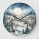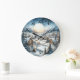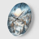 Winter Small Town Streets Snowy Full Moon Blue Large Clock