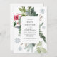 Elegant Winter-themed baby shower invitation features a gold frame surrounded by watercolor evergreen and pine. Personalise with your information or click "Click to customise further" to edit font styles, size and colours.