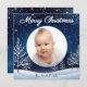 Winter Snow Blue Night Sky Custom Photo Elegant Holiday Card