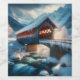 Winter, snow covered bridge & river wine label