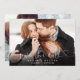 This elegant heart script photo save the date card features your photo and a script save the date above your names, date and venue. The reverse features an additional photo and message on a winter snowflakes background. Designed by Thisisnotme©
