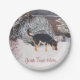 This original snow scene image on this cute dog paper plate is from a painting of a little black and tan mixed breed dog, he’s sniffing and scratching at the thick layer of freshly fallen snow that he’s just discovered for the first time in the garden. This little dog is named Eddie, he’s a german shepherd cross breed dog and he’s enjoy the cold weather in his winter garden. In the background of this scenic snow picture you can see a little grey garden gnome quietly sitting and reading his book at the side of the small snow covered frozen pond. There’s also lots of  snow covered  garden shrubs and an old wooden shed in Eddie’s garden,  all these bits and bobs add interest to this lovely little winter snow scene on this customisable christmas paper plate. You can personlise this christmas plate with your own text. The original painting of Eddie in the snow is tilted "First Snow" and is an acrylic painting.