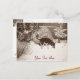 This original Christmas image is a painting of a very cute little black and tan mixed breed dog, he’s sniffing and scratching at the thick layer of freshly fallen snow that he’s just discovered for the first time in the garden. This little dog is named Eddie, he’s a german shepherd cross breed dog and he’s enjoy the cold weather in his winter garden. In the background of this festive picture you can see a little grey garden gnome quietly sitting and reading his book at the side of the small snow covered frozen pond. There’s also lots of  snow covered  garden shrubs and an old wooden shed in Eddie’s garden,  all these add interest to this lovely little festive Christmas snow scene postcard. This is a customisable postcard, you can personalise it with your own text. This acrylic painting is titled "First Snow" but this particular image has been digitally enhanced to give it a sepia effect.