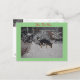 This original Christmas image is a painting of a very cute little black and tan mixed breed dog, he’s sniffing and scratching at the thick layer of freshly fallen snow that he’s just discovered for the first time in the garden. This little dog is named Eddie, he’s a german shepherd cross breed dog and he’s enjoy the cold weather in his winter garden. In the background of this festive picture you can see a little grey garden gnome quietly sitting and reading his book at the side of the small snow covered frozen pond. There’s also lots of snow covered garden shrubs and an old wooden shed in Eddie’s garden, all these add interest to this lovely little festive Christmas snow scene postcard. This is a customisable postcard, you can personalise it with your own text. This acrylic painting is titled "First Snow" but this particular image has been digitally enhanced to give it a colour engraved effect.