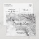 Elegant and modern SAVE THE DATE postcards to send your guests. Black script calligraphy with winter wonderland scene. Online personalised templates for ease of editing. Add your text in front and back of card. Contact designer for special requests.