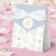 Send guests home with a sweet treat in this charming winter snowflake favour box. Adorned with a mix of gold, silver, and blue-toned snowflakes and topped with a customisable label and soft white ribbon, it’s perfect for a baby shower set in a winter wonderland. A festive and elegant finishing touch to your celebration.