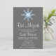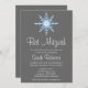 A trendy blue and grey snowflake Bat Mitzvah invitation. Shown in grey, white and blue. Easily personalise with your party details.