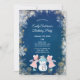 This birthday invitation is designed with a blue and pink ice design, accented with a snowman and snowflakes. The back is designed with a coordinating silver glitter pattern. Makes a great invitation for a girl's winter birthday party.