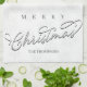 This design features a merry Christmas kitchen towel, a winter snowflakes design with rustic typography, calligraphy script, a festive Xmas, you can create your own, elegant rustic, a simple typography, with silver grey, a minimalist modern