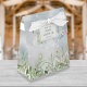 An elegant baby shower favor box featuring delicate watercolor leaves on a winter frost background framing the mom to be's name and special date set in modern typography. You can personalize with your own thank you message under the lid. A perfect way to say thank you to your guests! Designed by Thisisnotme©
