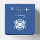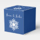 Give your guests, bridesmaids, groomsmen, or anyone else a special treat with these customisable favour boxes featuring a blue background with a white snowflake on the front, back, and top of the box. Each of these sides also features some sample text that you can customise for your own winter-themed wedding or event. Be sure to check out the other products in the Winter Snowflakes in Blue set to create a truly coordinated look for your event.
