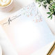 This personalised notepad features delicate snow-covered branches with a soft watercolor gradient background, creating a serene and elegant winter aesthetic. Perfect for nature lovers, seasonal stationery fans, and those who enjoy minimalist designs. Customise the text at the top for a unique touch, making it ideal for journalling, note-taking, or gifting.
