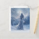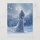 Winter solstice postcard with a beautiful bohemian woman in the snow with a full moon and stars in the night sky. Winter Solstice Yule greetings in a postcard.