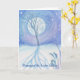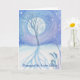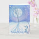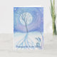 Color pencil drawing of a tree against a full moon, snowy landscape and starry sky. Message reads "blessings at the Winter Solstice," add your own message inside.