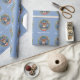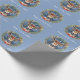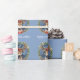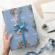 Winter Solstice Holiday Deer Wreath Berries Christmas wrapping paper with blue background.
