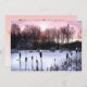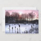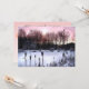 This invitation to a winter solstice party features a moment out of time. The sky is tinged with pink as the sun rises over a frozen pond. Trees and cattails ring the pond. All text on the back can be customised with your personal party information.