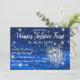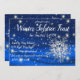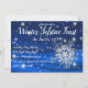 Holiday invitation blue background and icy snowflakes and twinkles.